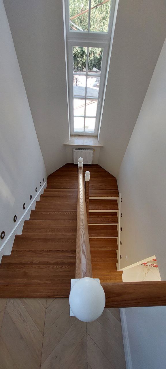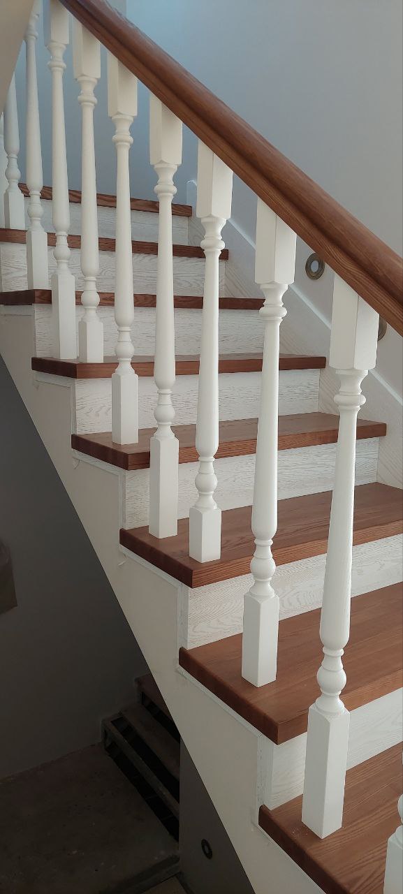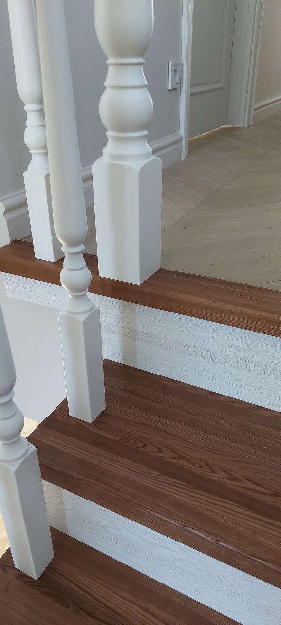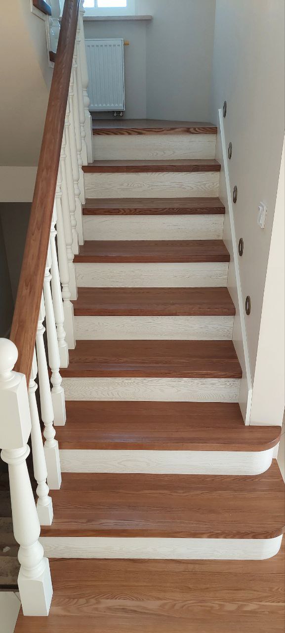 Материал ступеней: дерево (дуб/ясень, тонировка в орех).;